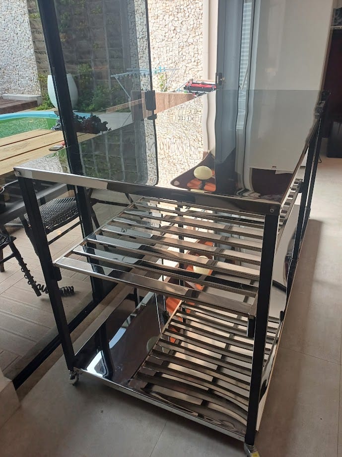 Estrutura de 1,25mm galvanizado, pintura epóxi.